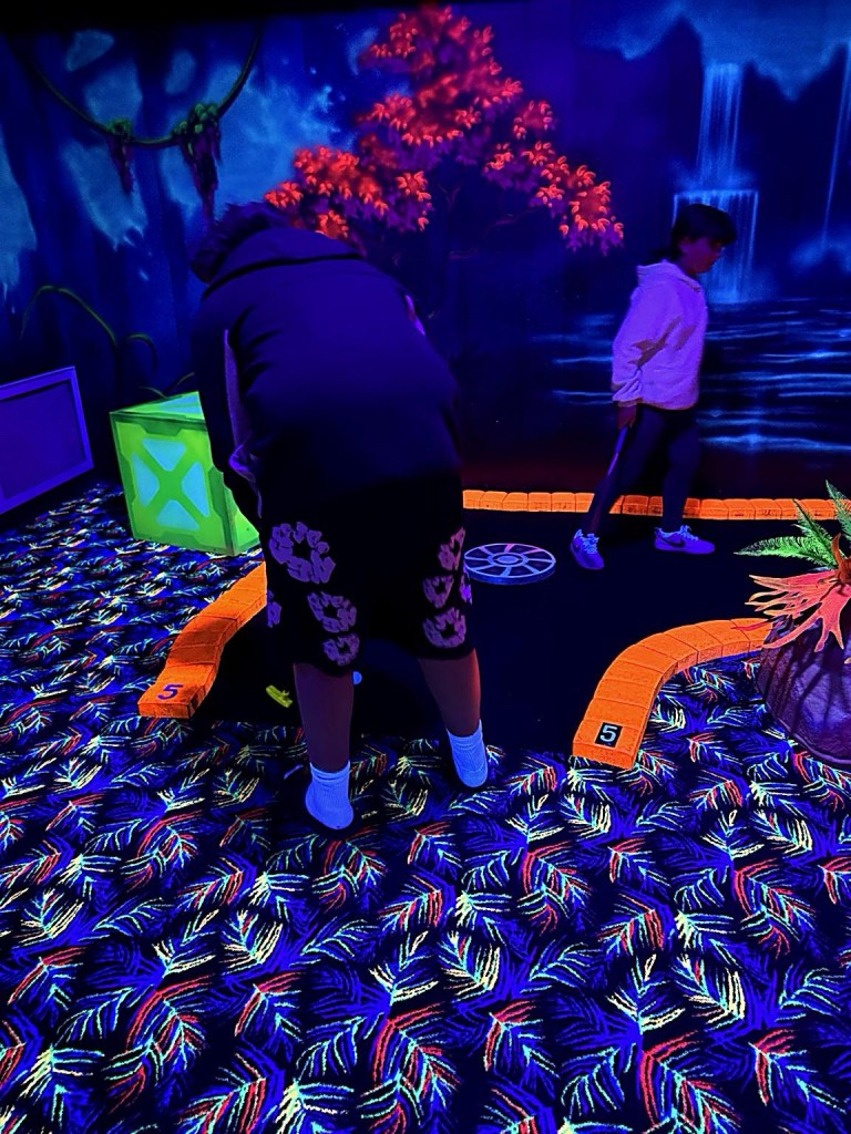 Miniature golfing with the kids earlier, watching JLo and the Nurse plan wedding things, listening to the rain outside walking to the car, coffee this morning at the spot where Noto used to be.