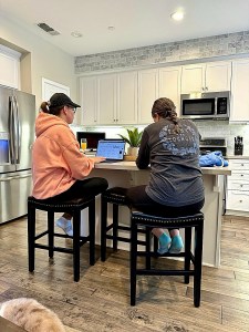Jenny and Nurse doing bride things. Me in the nook entering receipts, then realizing I’m spending too much time on that shit.
